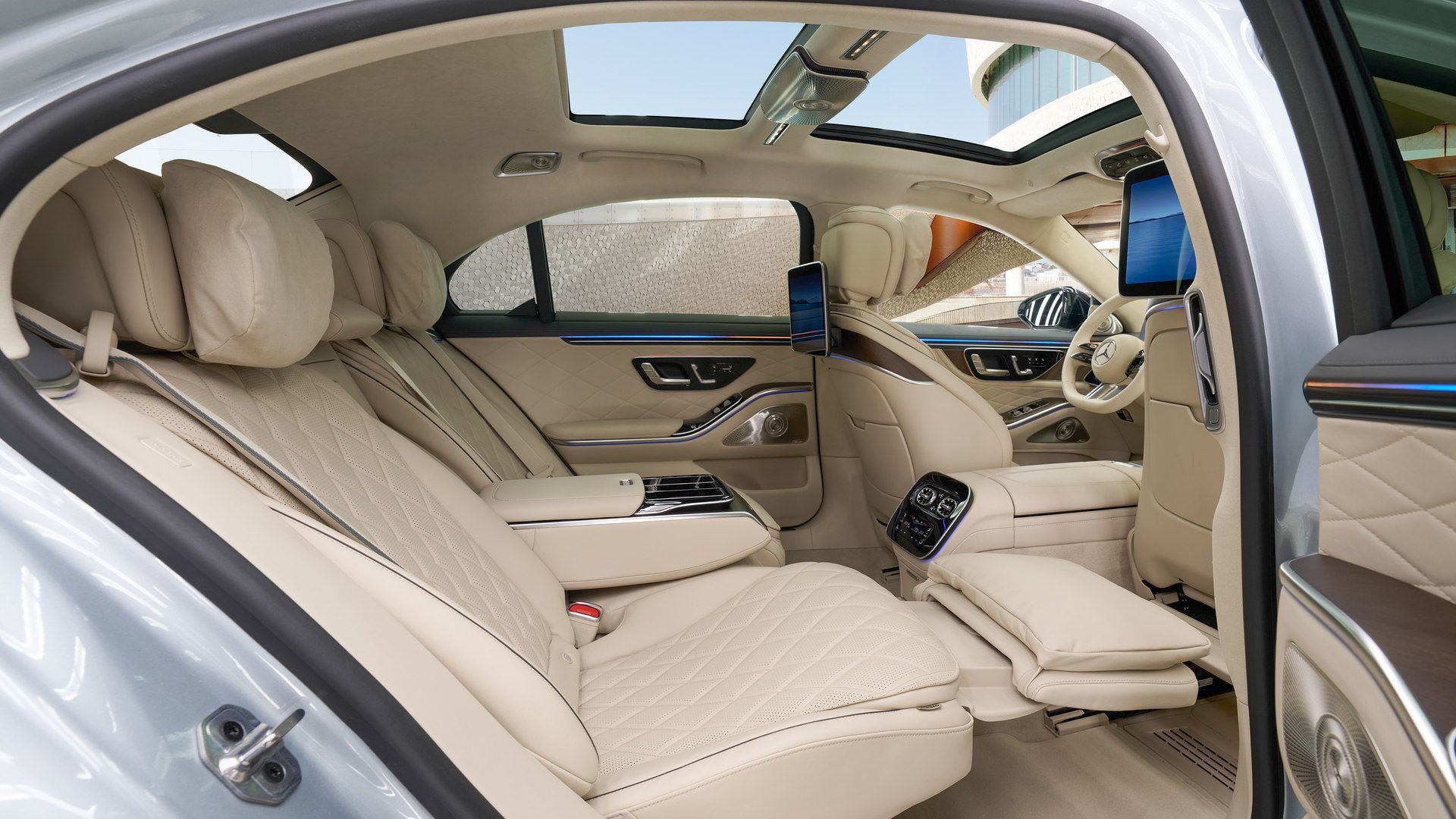 Les écrans passagers arrière intègrent également des caméras HD, les rendant idéaux pour la vidéoconférence avec Microsoft Teams, Zoom ou Webex. Cette innovation transforme chaque siège en espace de réunion connecté, faisant de la Classe S le choix idéal pour les cadres qui valorisent la productivité et le confort.